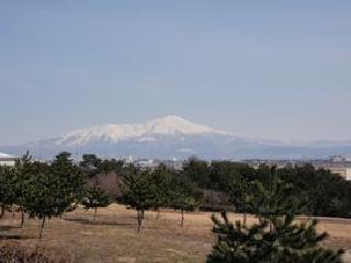 「酒田市美術館、出羽遊心館から見る鳥海山の眺望」