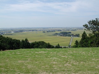 「アイアイひらたから見る庄内平野と屋敷林の眺望」