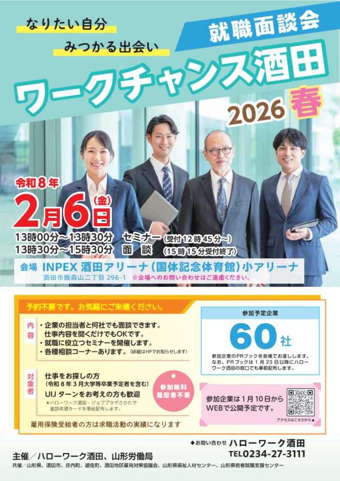 就職面談会「ワークチャンス酒田2026春」チラシ