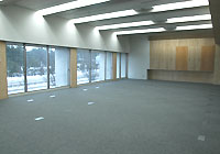 ホール、研修室、グラウンドが配置されており、講演会や各種会議、サッカー等で利用されています。
